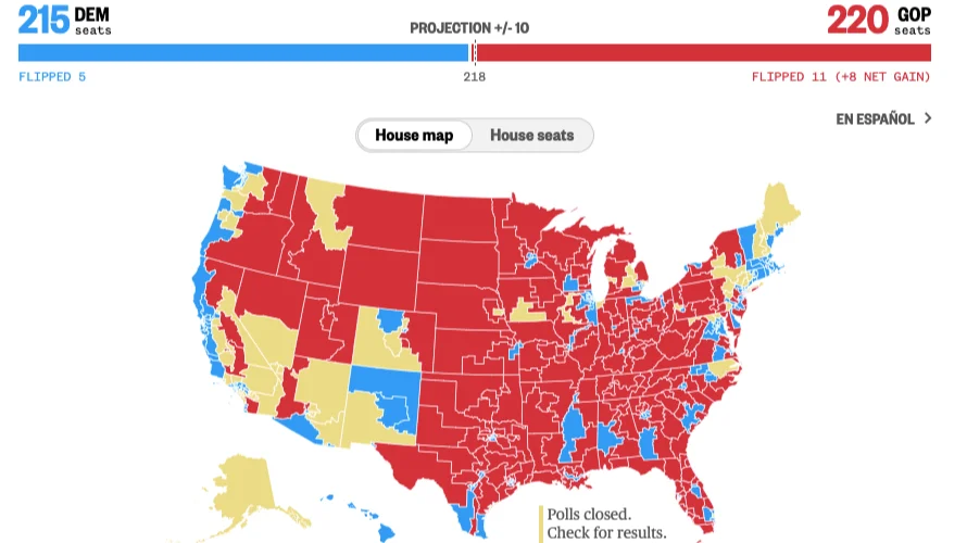 In order to control the House of Representatives, a party needs to win 218 seats.
