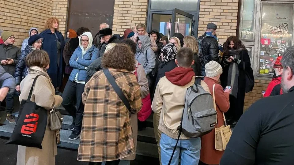During the intermission, the police officers returned. They announced an evacuation due to alleged messages about the building being mined. Everyone in the audience was made to go outside. For half an hour, they used a sniffer dog to search the hall, but nothing was found. Afterwards, some of the audience returned to their seats.