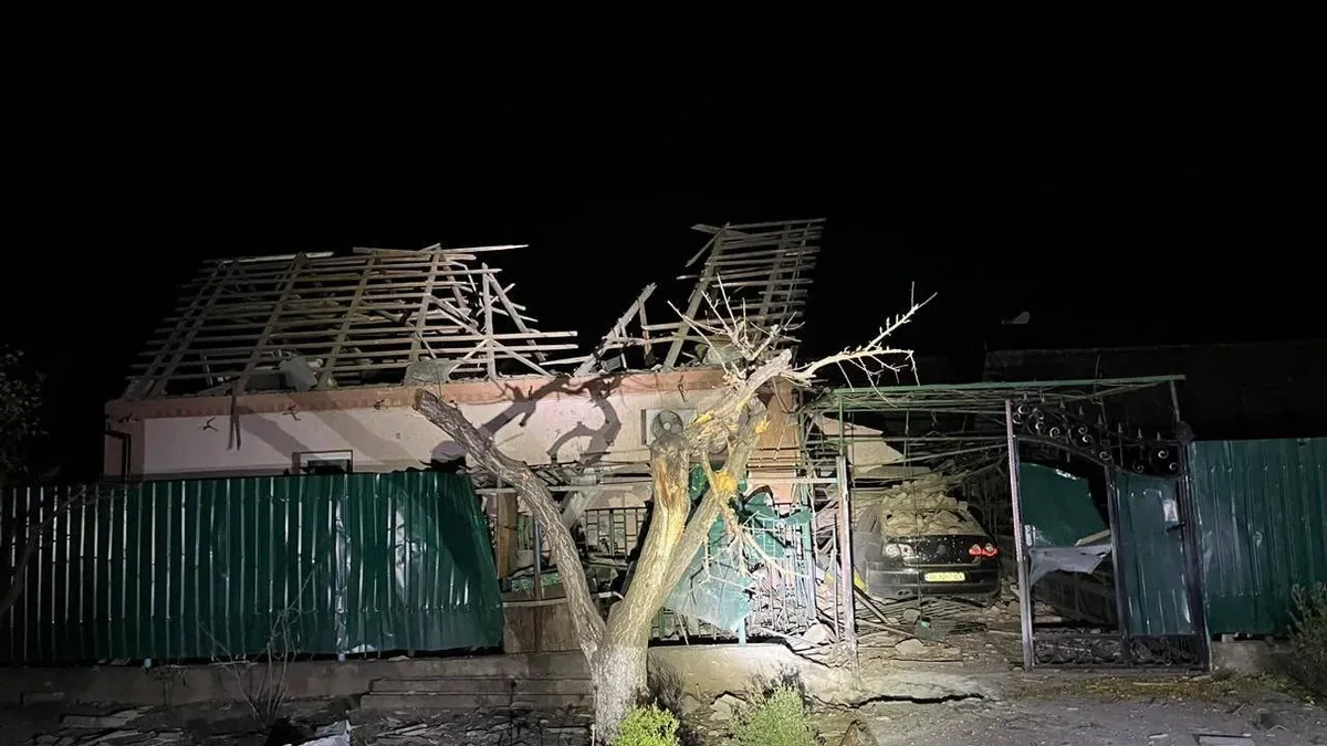 According to Lysak, two local residents were wounded — they are concussed. Seven private houses and a multi-storey building were damaged, windows shattered in a college dorm building. Furthermore, three gas pipelines, one power line, 14 solar panels, outbuildings, and five cars were damaged.