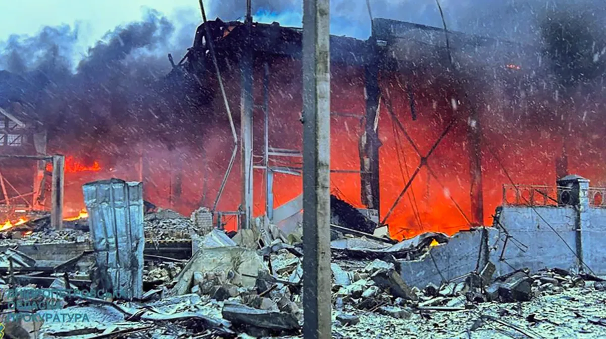 Fire following a Russian rocket attack in the Dnipro region, 8 January 2024. Photo: EPA-EFE / Dnipropetrovsk Regional State Administration.