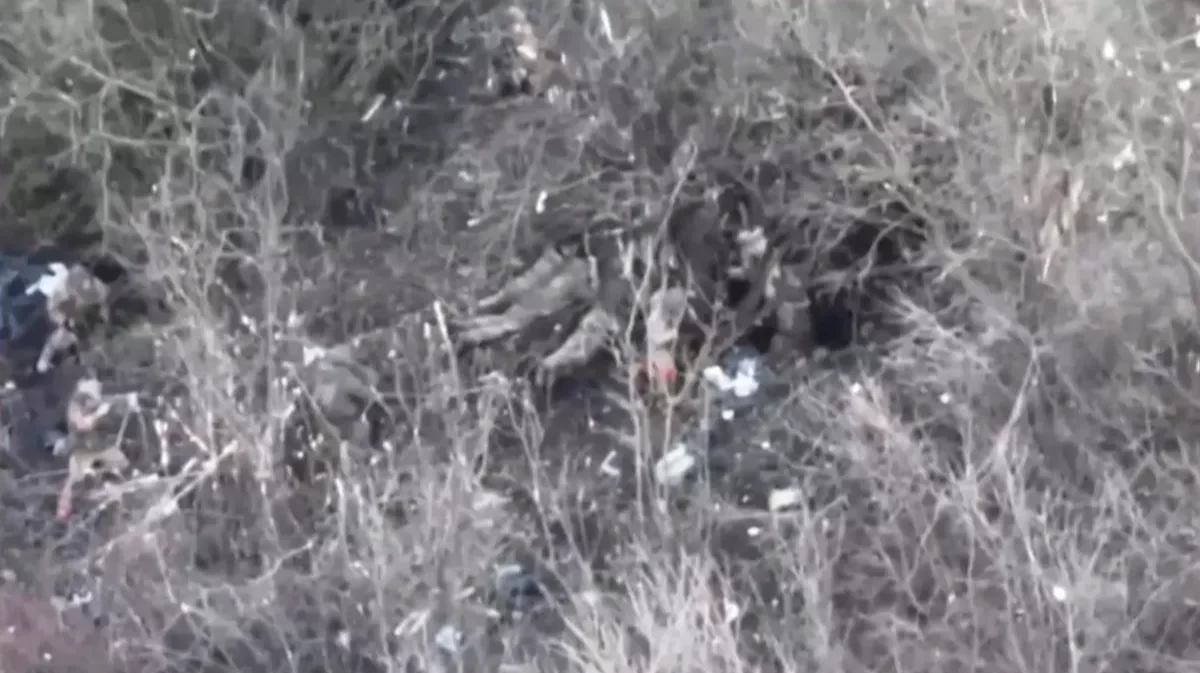The drone footage, likely shot between the villages of Ivanivske and Khromove in eastern Ukraine, appears to show Russian soldiers ordering Ukrainian POWs to leave a trench with their hands raised before firing at them.