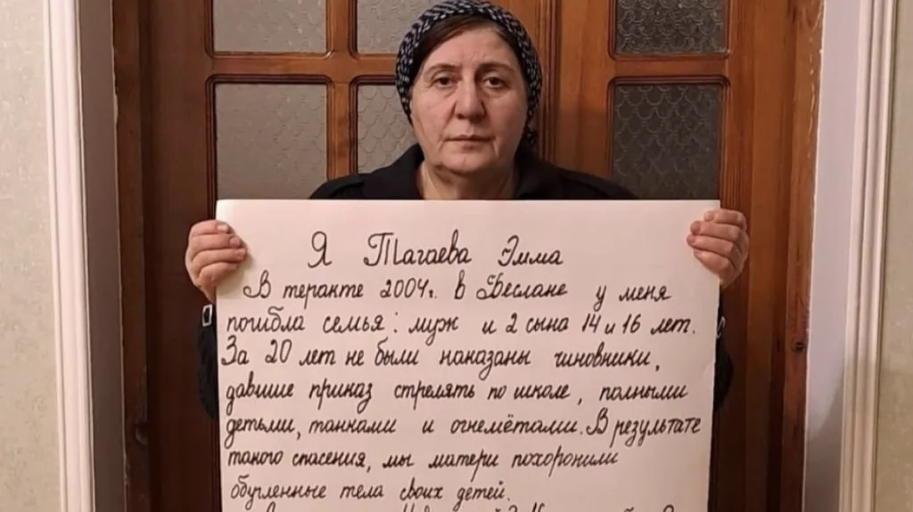 Shortly after the crisis, the advocacy group Tagaeva co-chairs, the Voice of Beslan, demanded an independent investigation into the Kremlin’s response. The Russian authorities have attempted to silence or disband the group several times, and in 2016, Tagaeva and other Beslan mothers were fined for wearing T-shirts that read “Putin is the executioner of Beslan”.