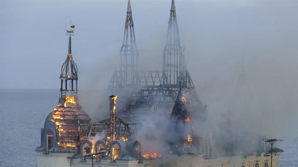 The missile hit the Odesa Law Academy, a Gothic-style building known to locals as the “Harry Potter castle”, which was engulfed in flames for hours after the strike.