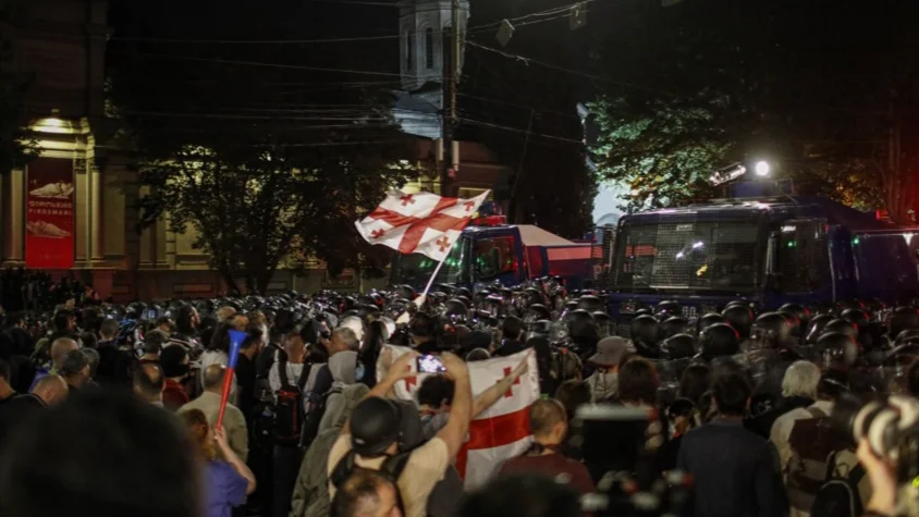 Riot police and protesters clashed violently in Tbilisi in the early hours of Wednesday over the progression of a “foreign agent” bill according to local independent outlet Paper Kartuli.