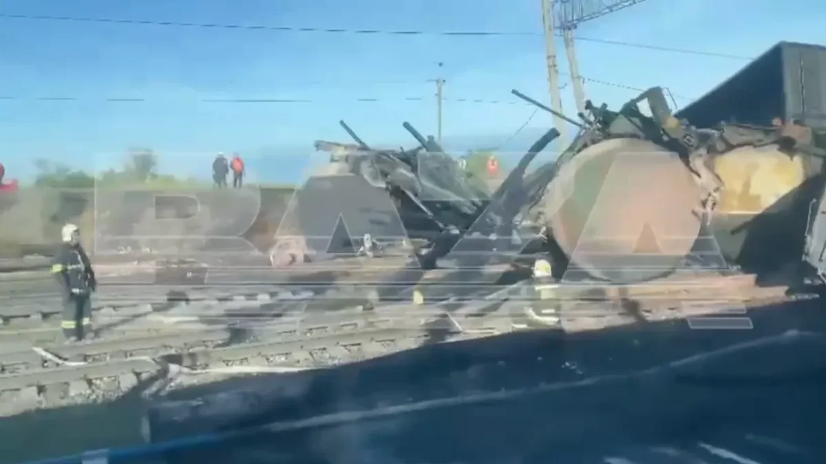 Freight train derails after catching fire in southern Russia in suspected drone attack