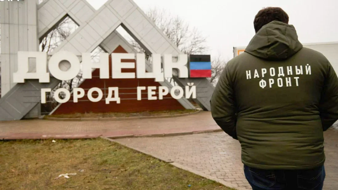 A volunteer of the pro-Kremlin movement, All-Russia People’s Front, in occupied Donetsk. Photo: All-Russia People's Front / Telegram