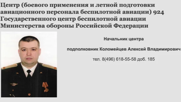 51-year-old Colonel Alexey Kolomeytsev, who reportedly headed the Russian army’s 924th State Centre for Unmanned Aviation, was killed in the city of Kolomna just over 100km southeast of Moscow, the directorate said.