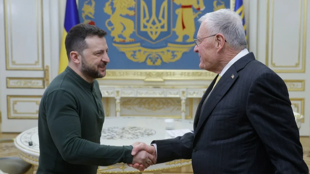Ukrainian President Volodymyr Zelensky has met US special envoy to Ukraine Keith Kellogg in Kyiv, but a joint press conference slated for after the talks was cancelled at the request of the US delegation, RBC Ukraine reported on Thursday.