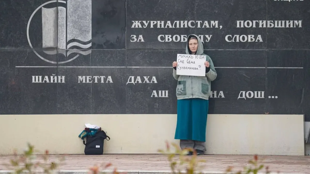 Before mounting her solo protest in Grozny with a handmade sign reading “Where is Seda Suleymanova?”, written in Russian and Chechen, Lena Patyaeva posted a statement on her Telegram channel saying that she was aware of “all the risks” of her actions and that human rights groups had discouraged her from travelling to Grozny for her own safety.
