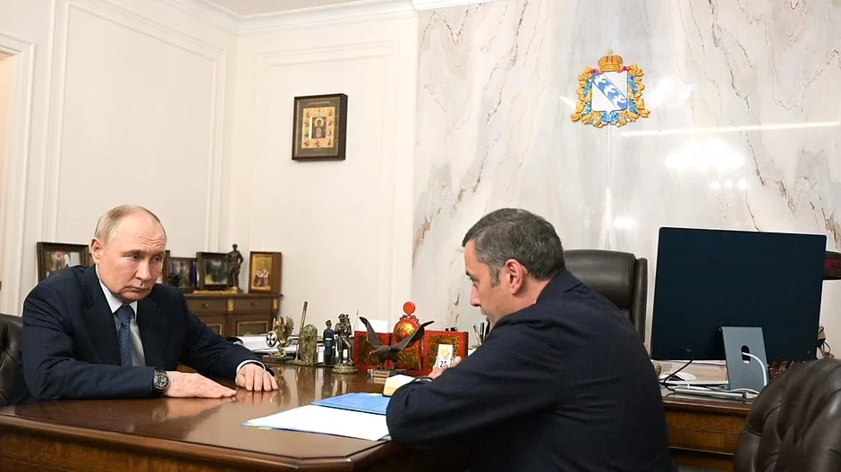 In the course of his visit, Putin toured a nuclear power plant which is currently under construction, held a meeting with leading local politicians and met the acting governor of the region, Alexander Khinshtein.