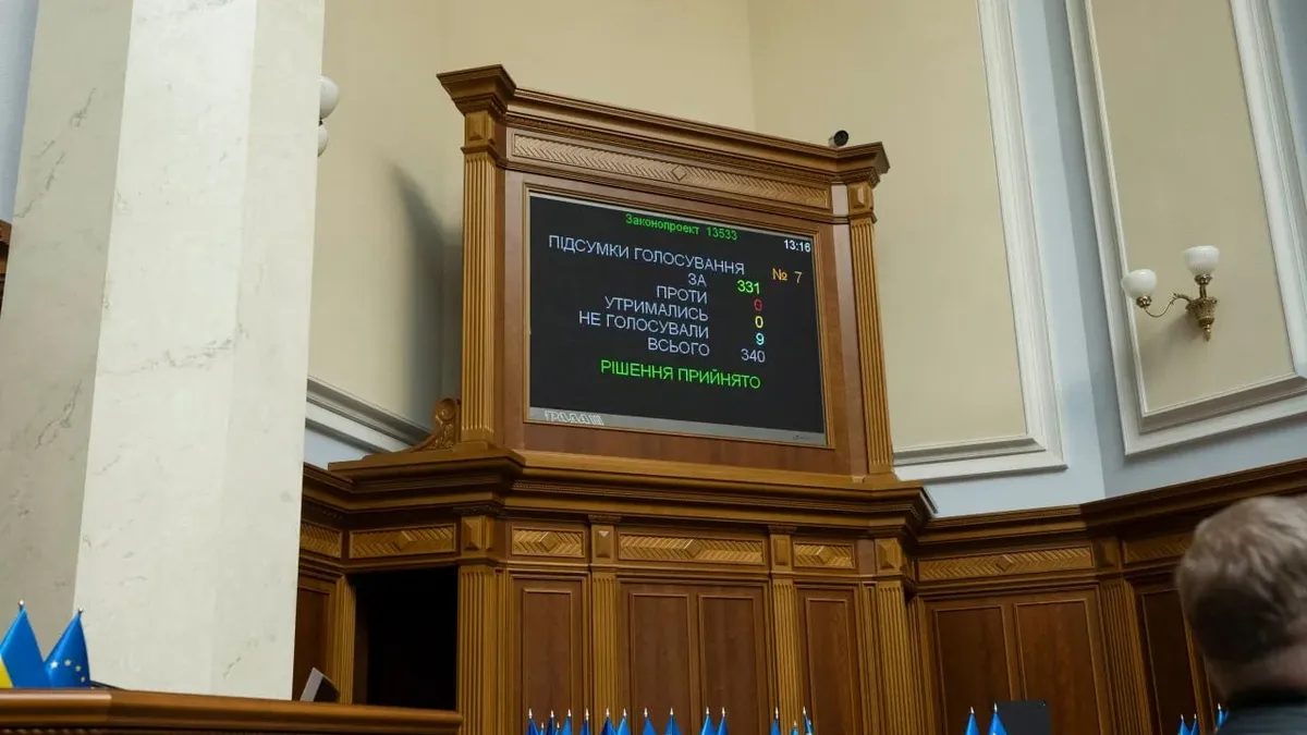 The Rada debate on the proposed legislation was broadcast live on Thursday, the first such broadcast since the beginning of the war, with 331 deputies voting in favour, nine abstentions and no deputies voting against the measure.