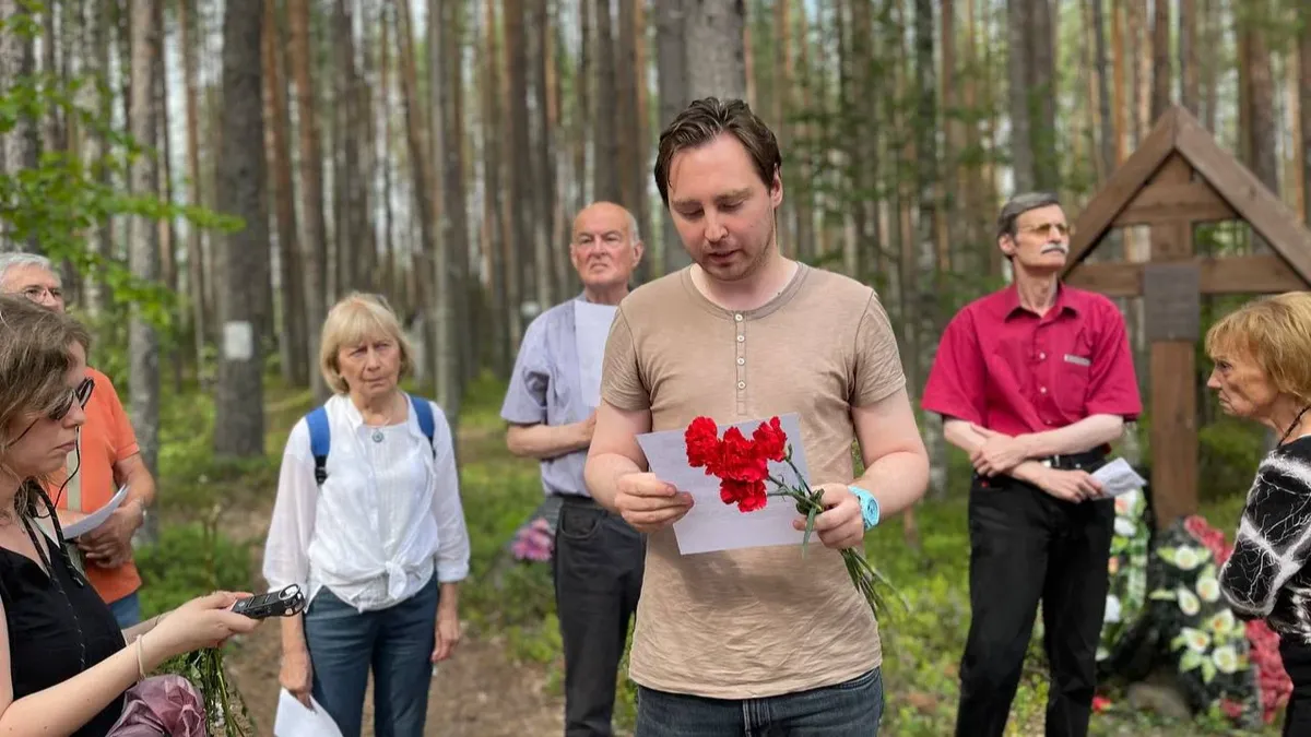 The service took place in Sandarmokh, where at least 6,000 people were secretly shot and buried by the NKVD, the Stalinist secret police, from 1937 to 1938. Since the discovery of mass graves at the site in 1997, some 300 memorial plaques have been placed to honour the dead, and an annual memorial event is held on 5 August in which the names of the victims are read aloud by activists.