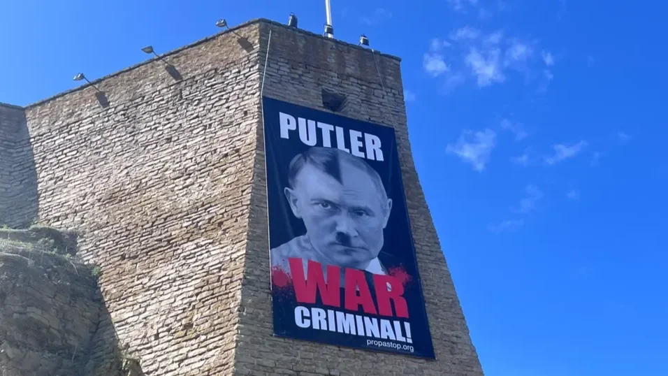 Maria Smorzhevskikh-Smirnova, the director of the museum, which faces the western Russian city of Ivangorod across the Narva River, has had a poster hung on the external wall of Narva Fortress calling Vladimir Putin a “war criminal” each year since 2023 to coincide with Russia’s Victory Day celebrations in May.